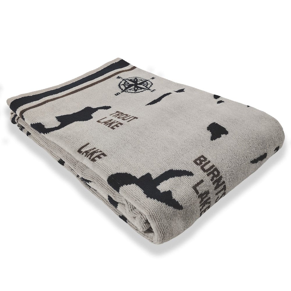Nothing's better than wrapping up in an amazing bath towel. Our new cotton towels will leave you feeling warm and cozy whether you are at home or at the beach. Perfect for lakeside lounging, our lake map designs used for our woolen throw blankets are also available in a cotton towel.