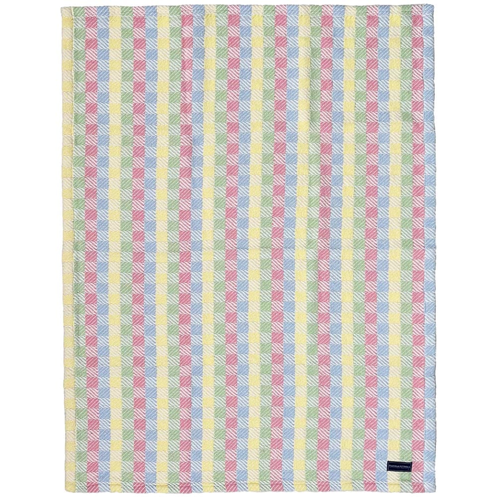 Tourmaline is our bestselling, gender-neutral blanket, woven with love in Maine. This 100% USA cotton baby blanket features a classic hopscotch checker pattern in a rainbow of pastel hues. Generously sized to fit standard size cribs.